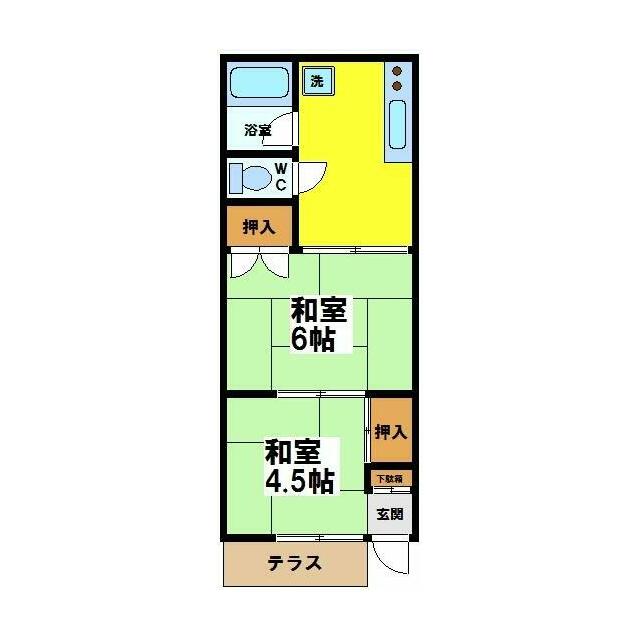 | 間取り | 2K(和6、和4.5、K3) | 主要採光面 | 南 |
